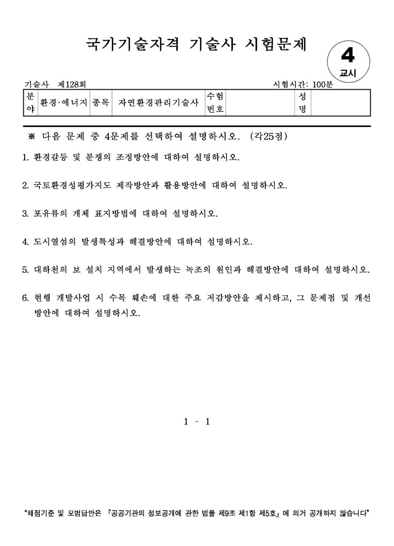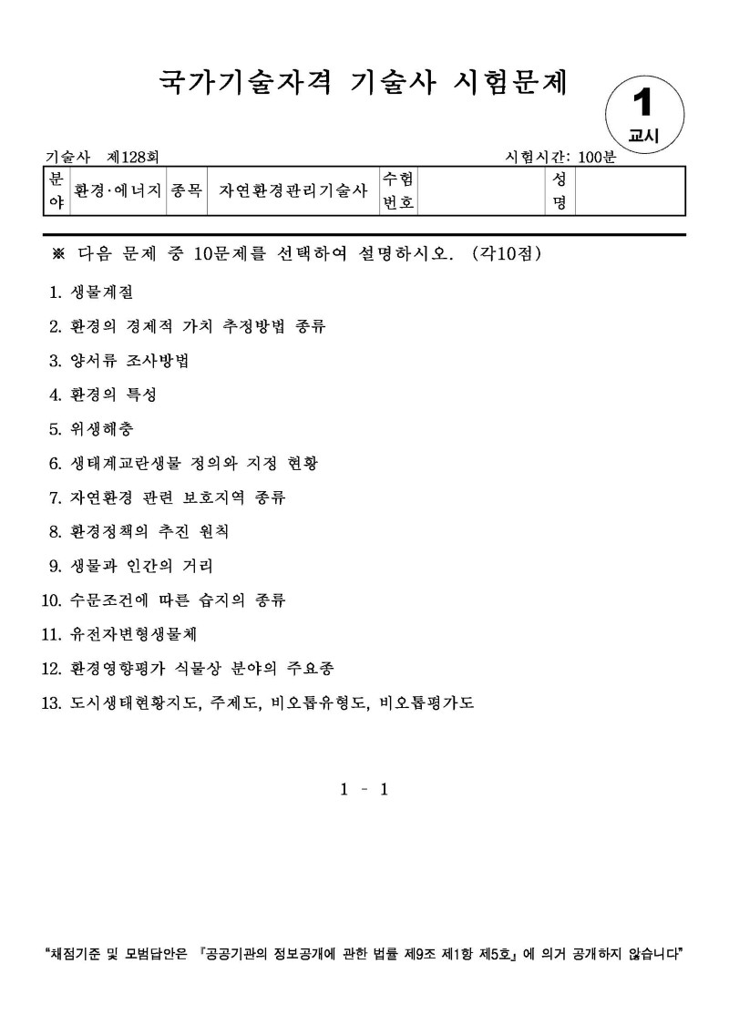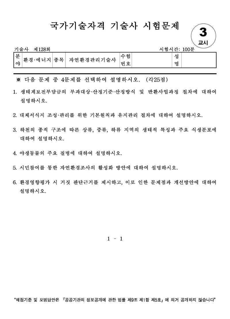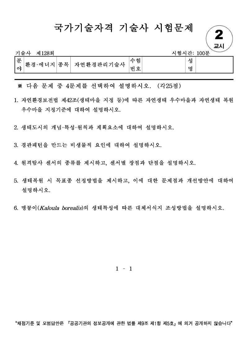 [128ȸ] ÀÚ¿¬È¯°æ°ü¸®±â¼ú»ç ±âÃâ¹®Á¦ |