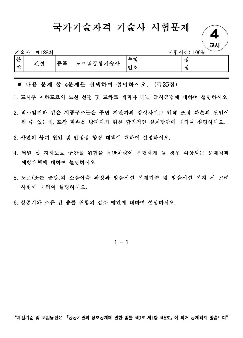 [128ȸ] µµ·Î¹×°øÇ×±â¼ú»ç ±âÃâ¹®Á¦ |