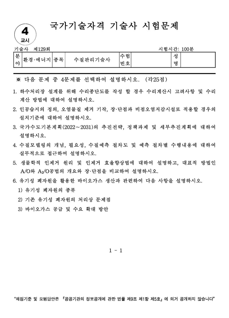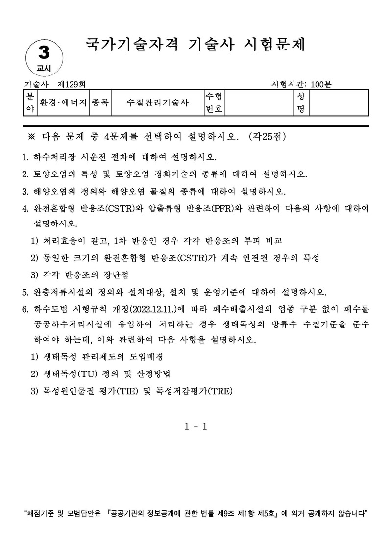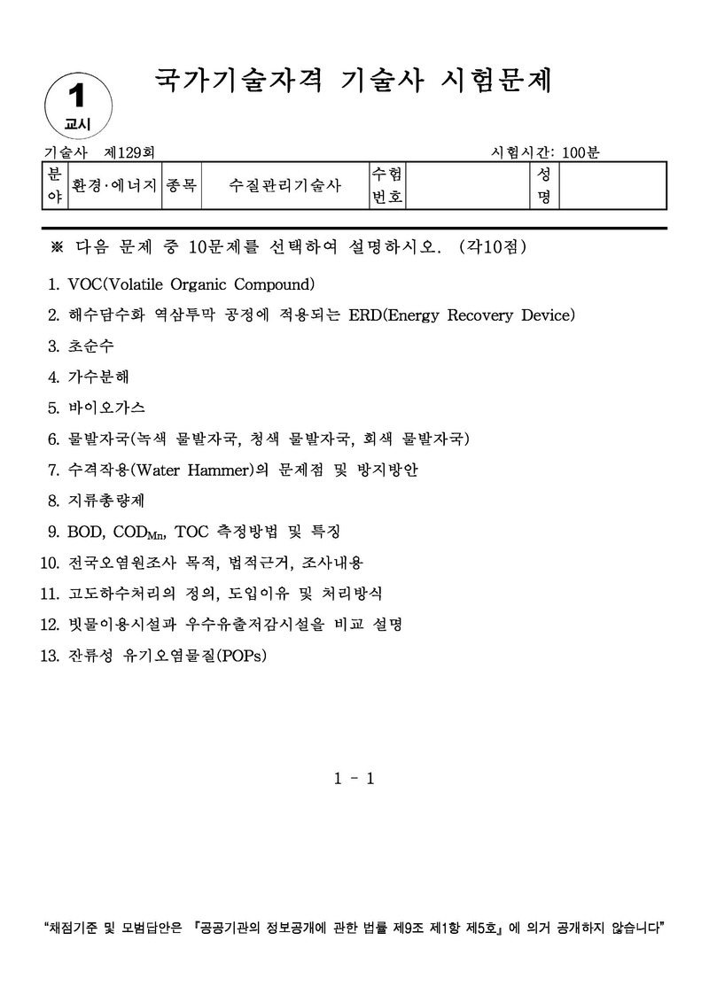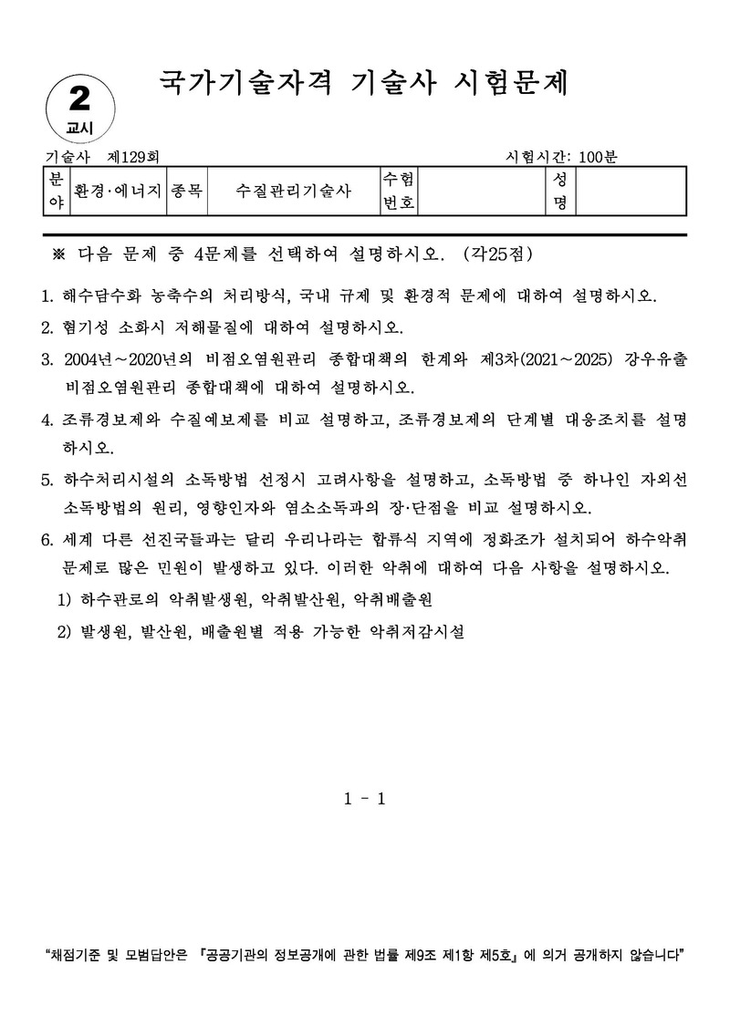 [129ȸ] ¼öÁú°ü¸®±â¼ú»ç ±âÃâ¹®Á¦ |