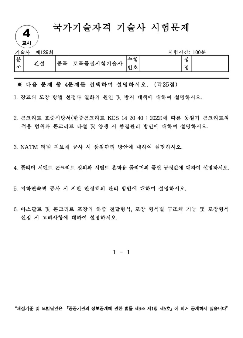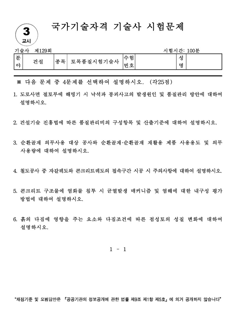 [129ȸ] Åä¸ñǰÁú½ÃÇè±â¼ú»ç ±âÃâ¹®Á¦ |