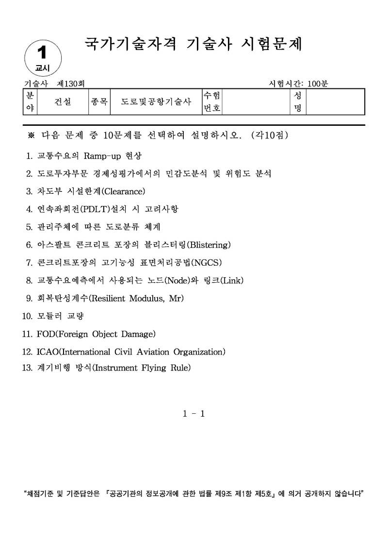 [130ȸ] µµ·Î¹×°øÇ×±â¼ú»ç ±âÃâ¹®Á¦ |