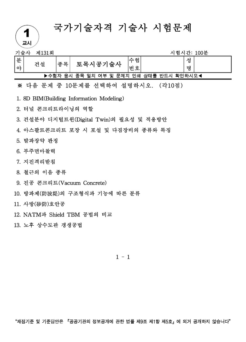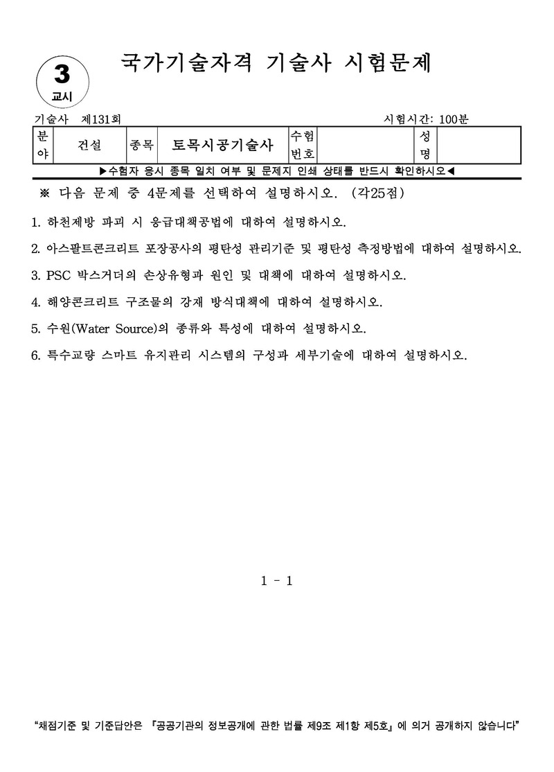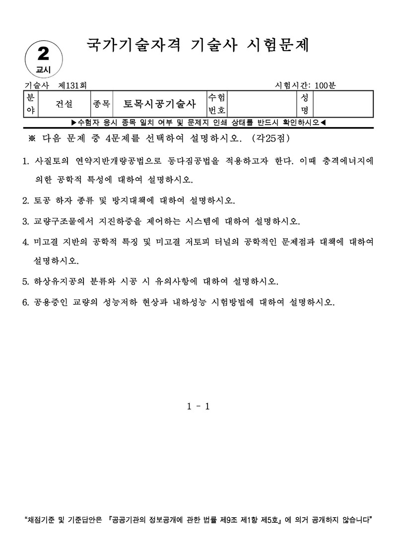 [131ȸ] Åä¸ñ½Ã°ø±â¼ú»ç ±âÃâ¹®Á¦ |
