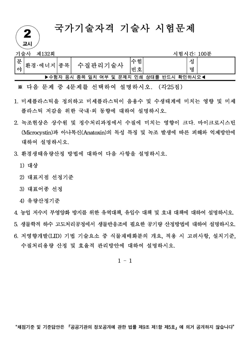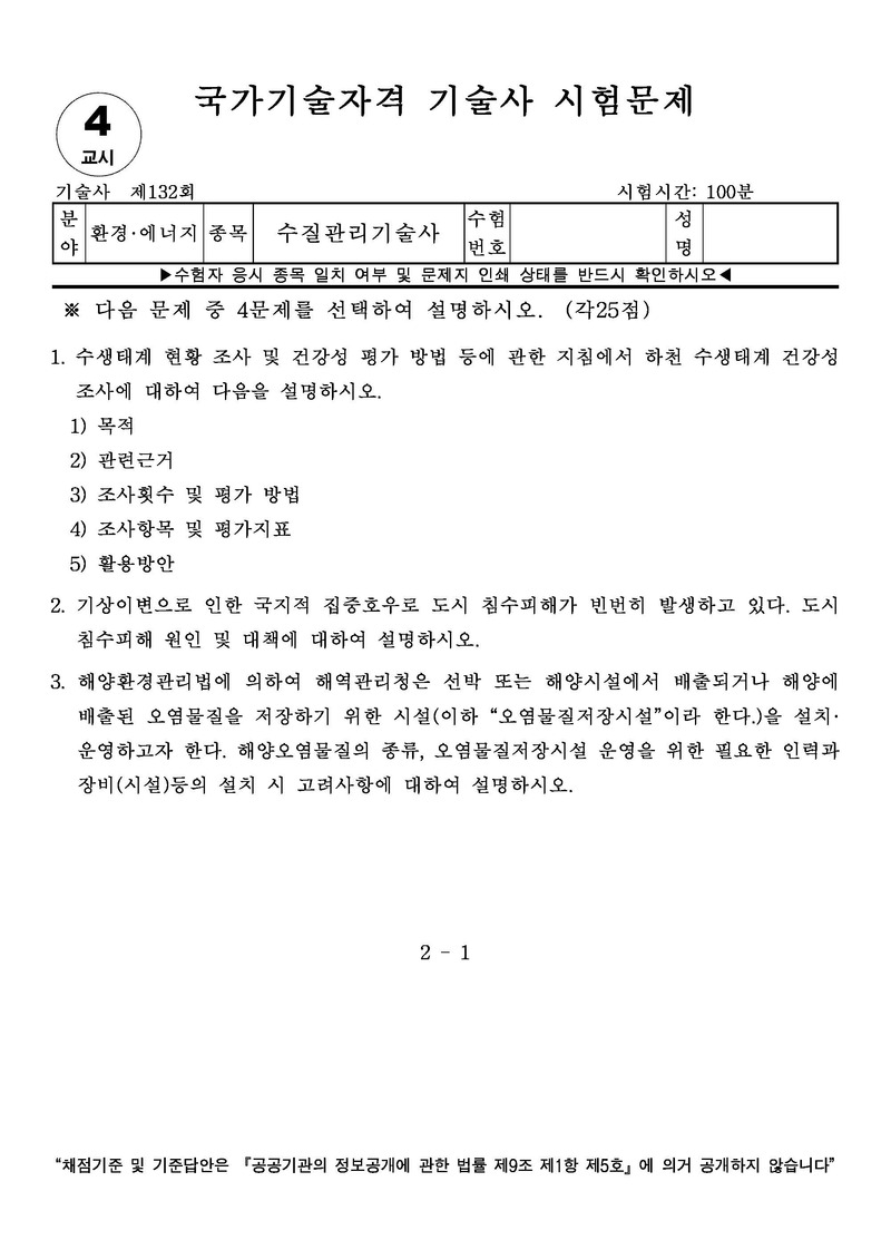 [132ȸ] ¼öÁú°ü¸®±â¼ú»ç ±âÃâ¹®Á¦ |