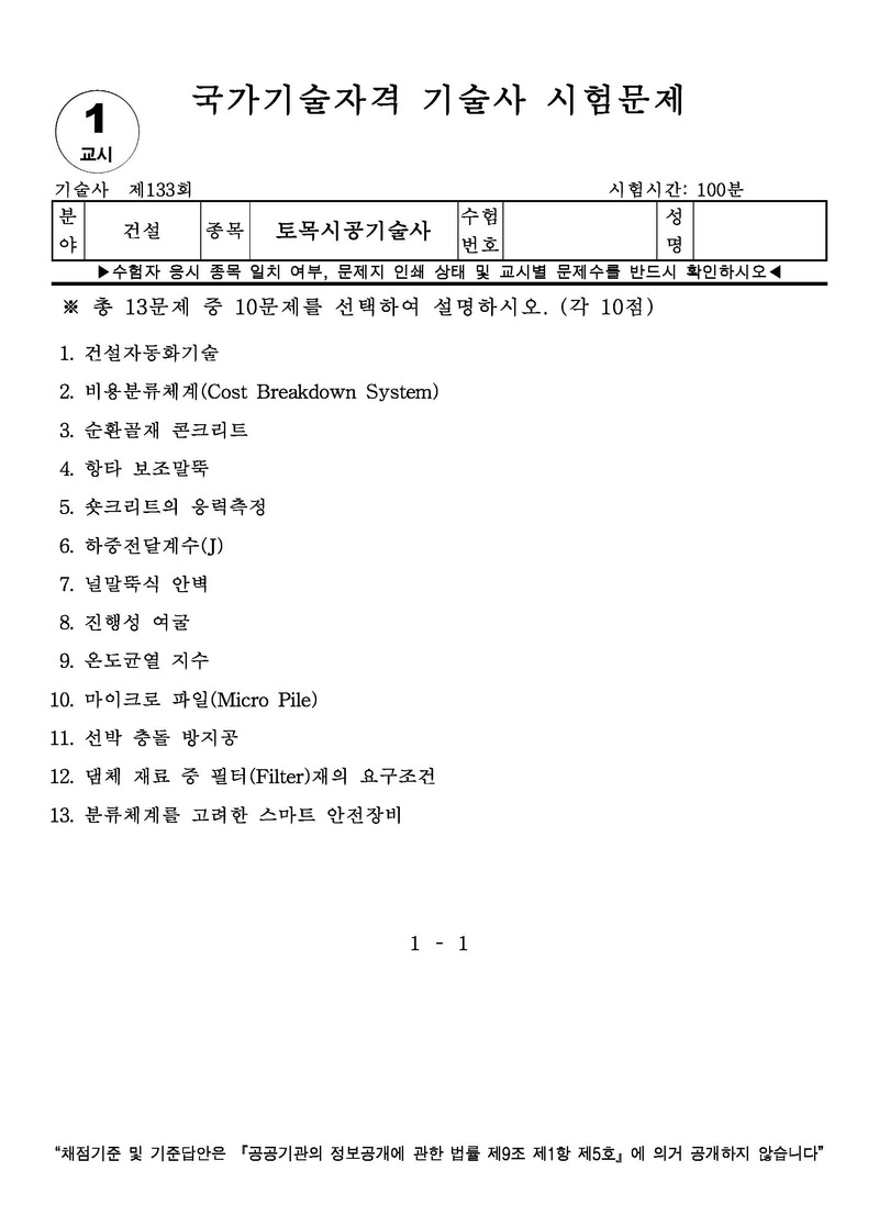 [133ȸ] Åä¸ñ½Ã°ø±â¼ú»ç ±âÃâ¹®Á¦ |