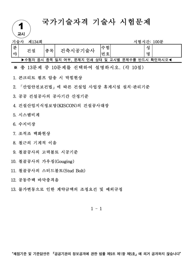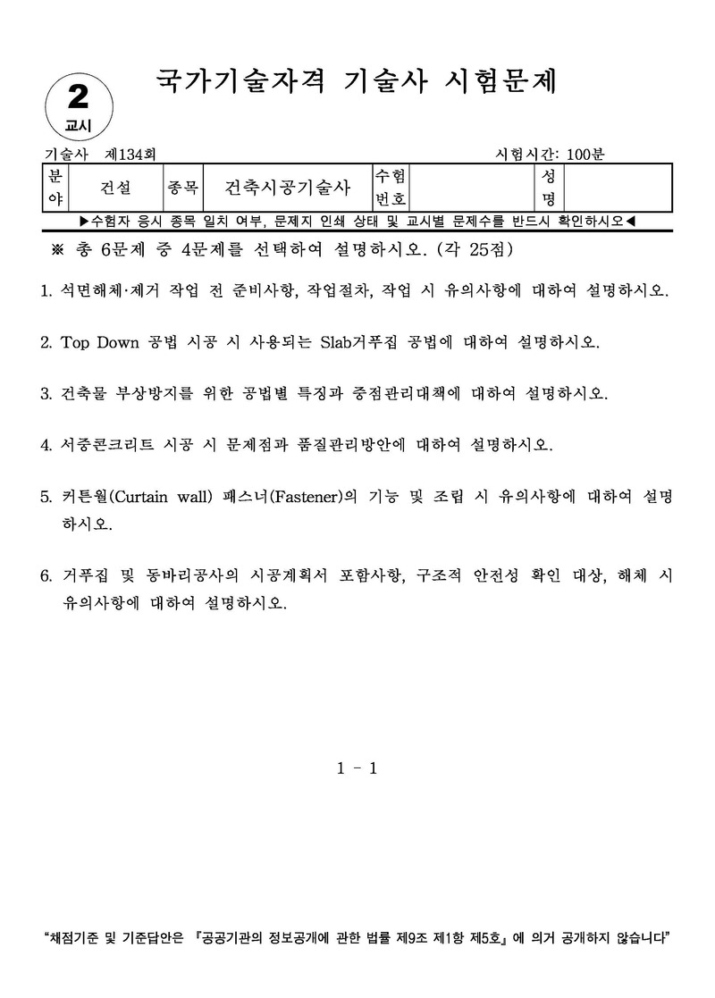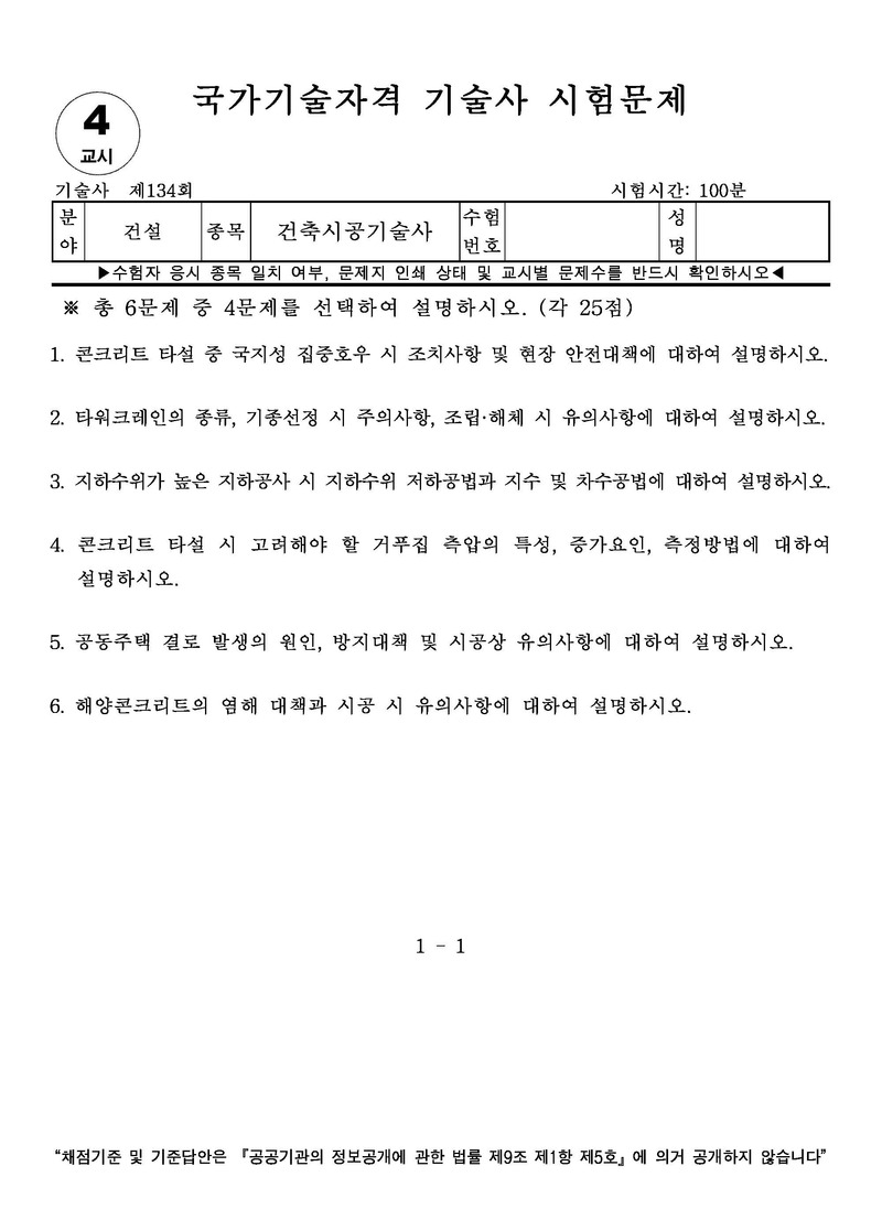 [134ȸ] °ÇÃà½Ã°ø±â¼ú»ç ±âÃâ¹®Á¦ |