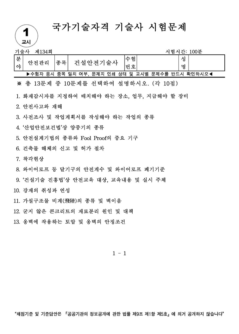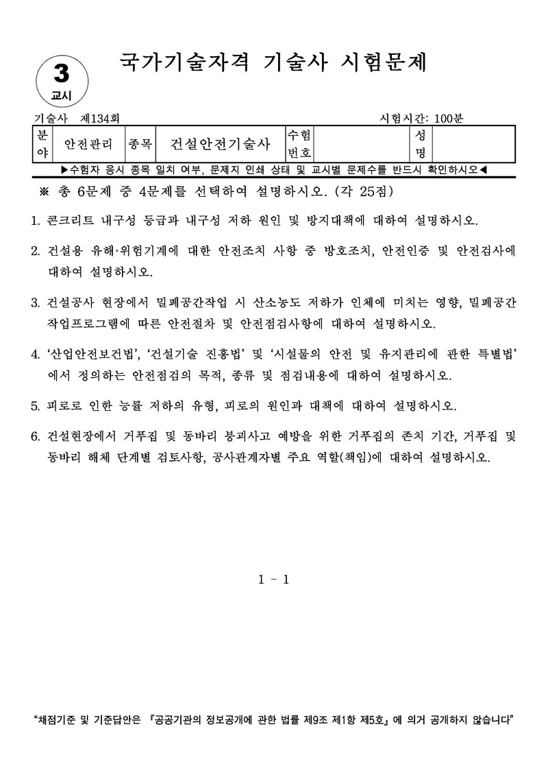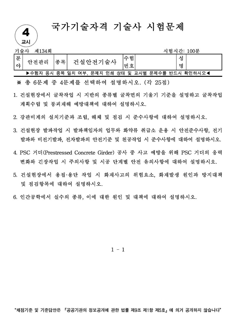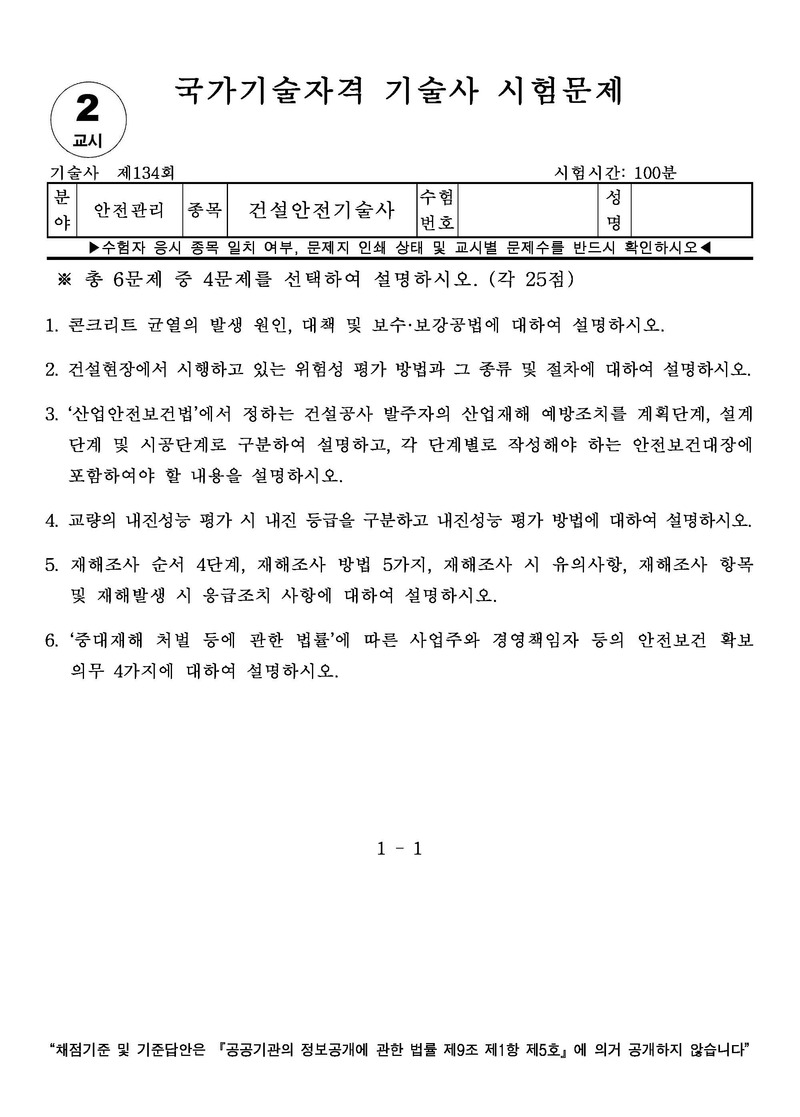 [134ȸ] °Ç¼³¾ÈÀü±â¼ú»ç ±âÃâ¹®Á¦ |