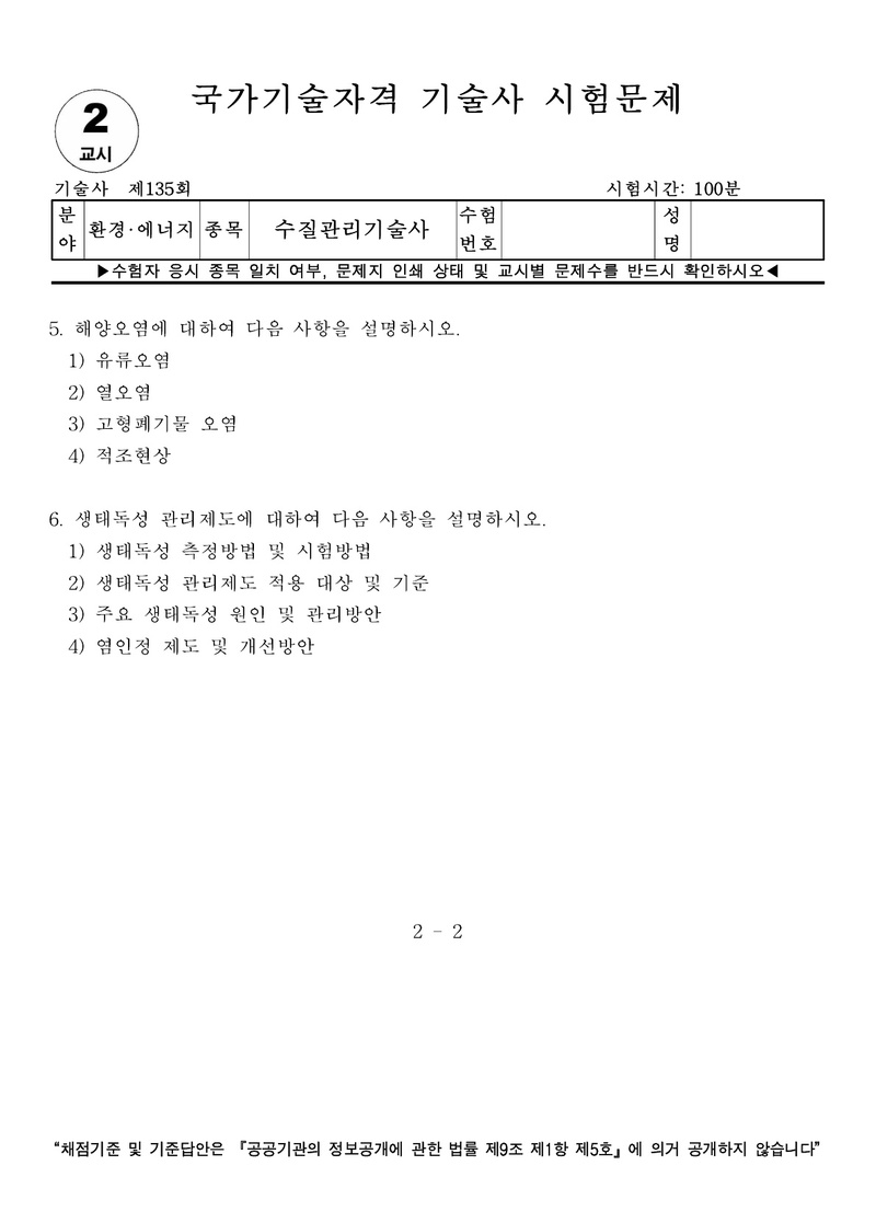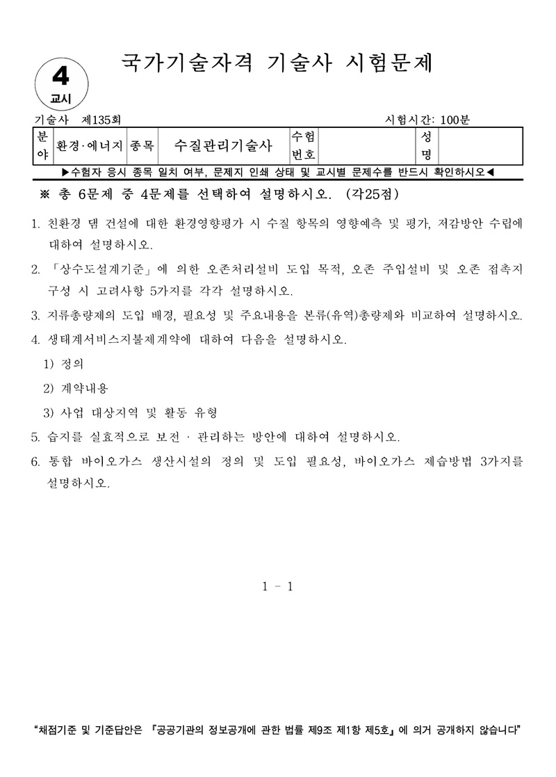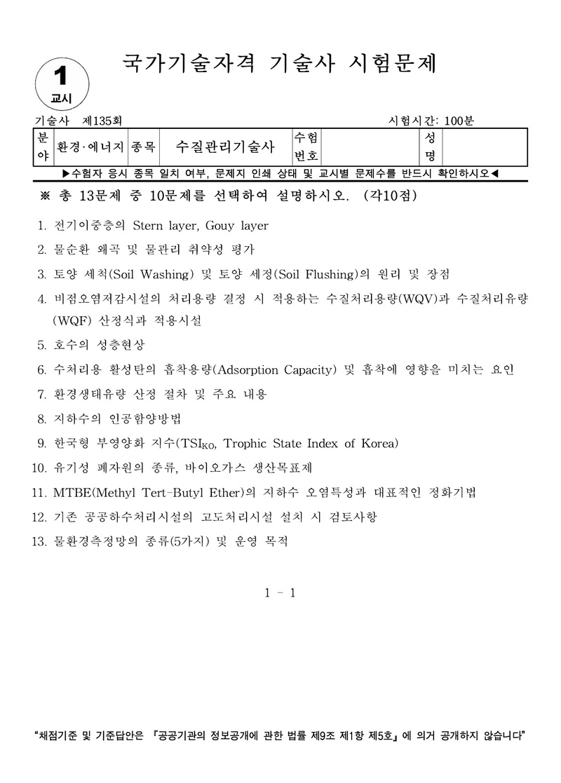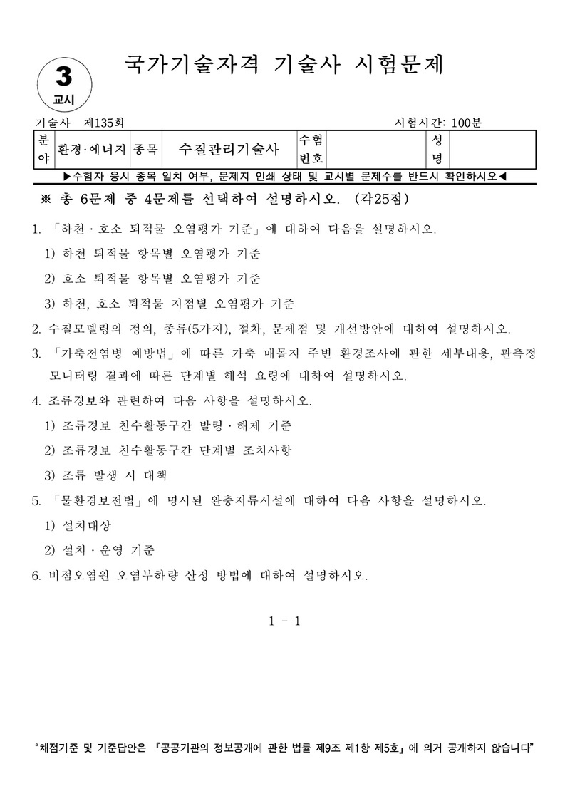 [135ȸ] ¼öÁú°ü¸®±â¼ú»ç ±âÃâ¹®Á¦ |