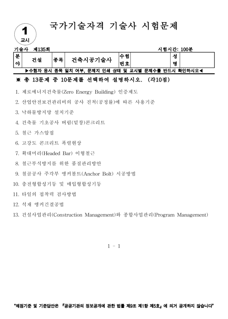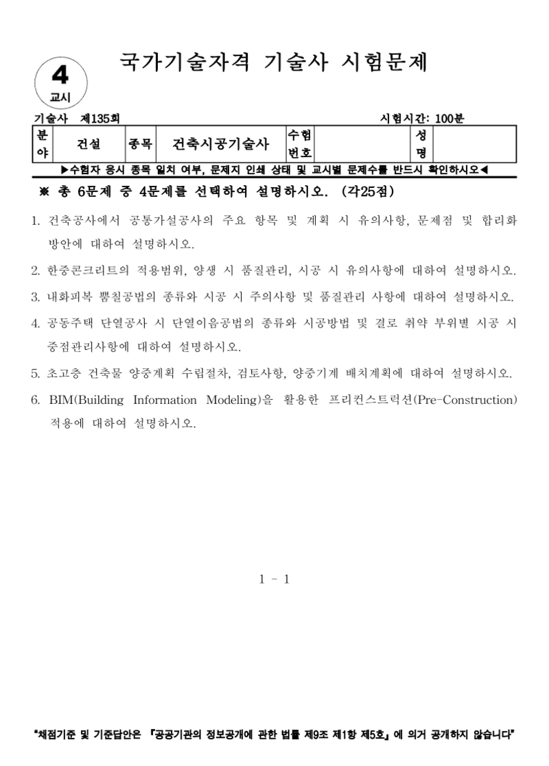 [135ȸ] °ÇÃà½Ã°ø±â¼ú»ç ±âÃâ¹®Á¦ |
