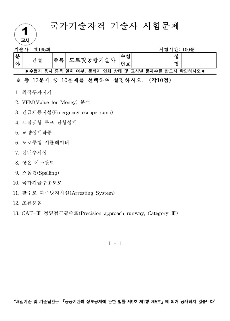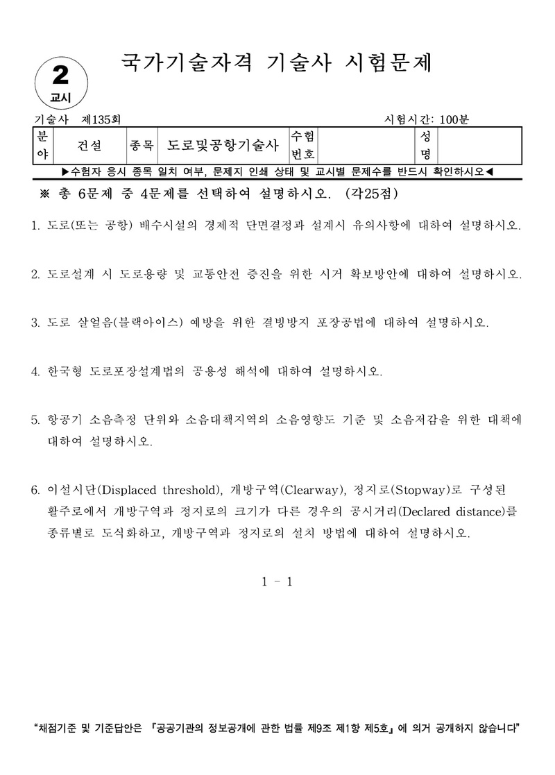 [135ȸ] µµ·Î¹×°øÇ×±â¼ú»ç ±âÃâ¹®Á¦ |