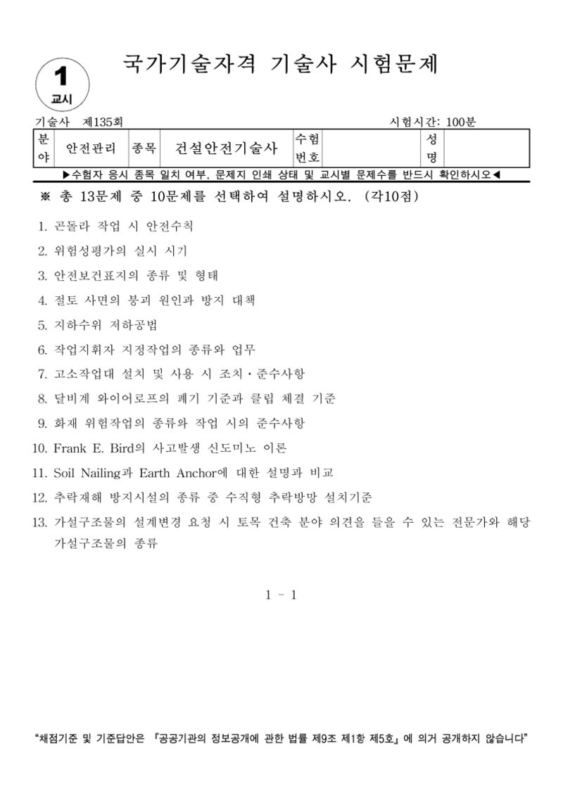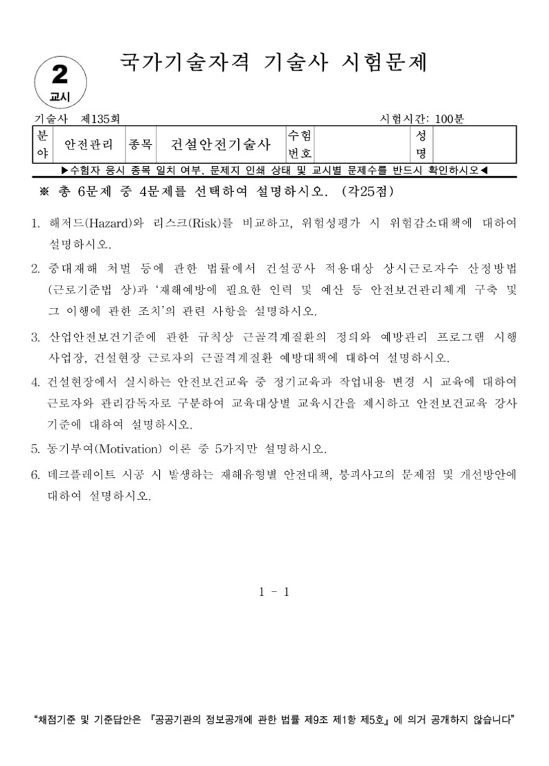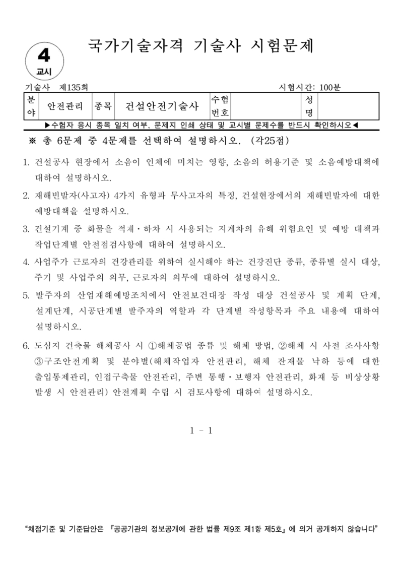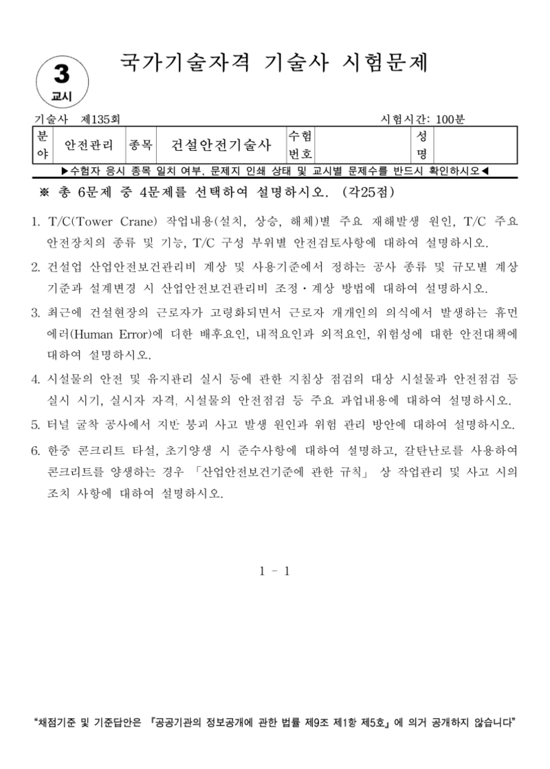 [135ȸ] °Ç¼³¾ÈÀü±â¼ú»ç ±âÃâ¹®Á¦ |