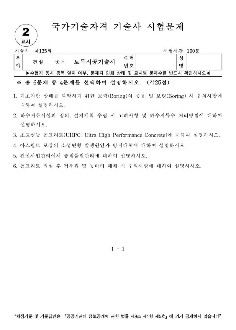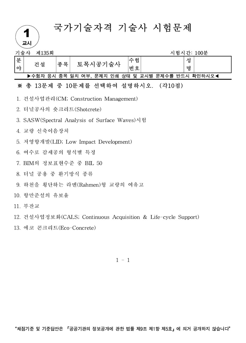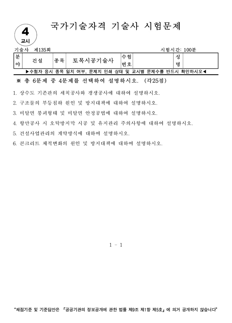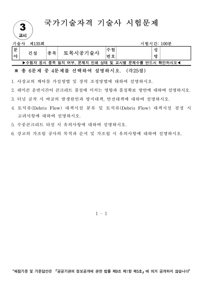 [135ȸ] Åä¸ñ½Ã°ø±â¼ú»ç ±âÃâ¹®Á¦ |