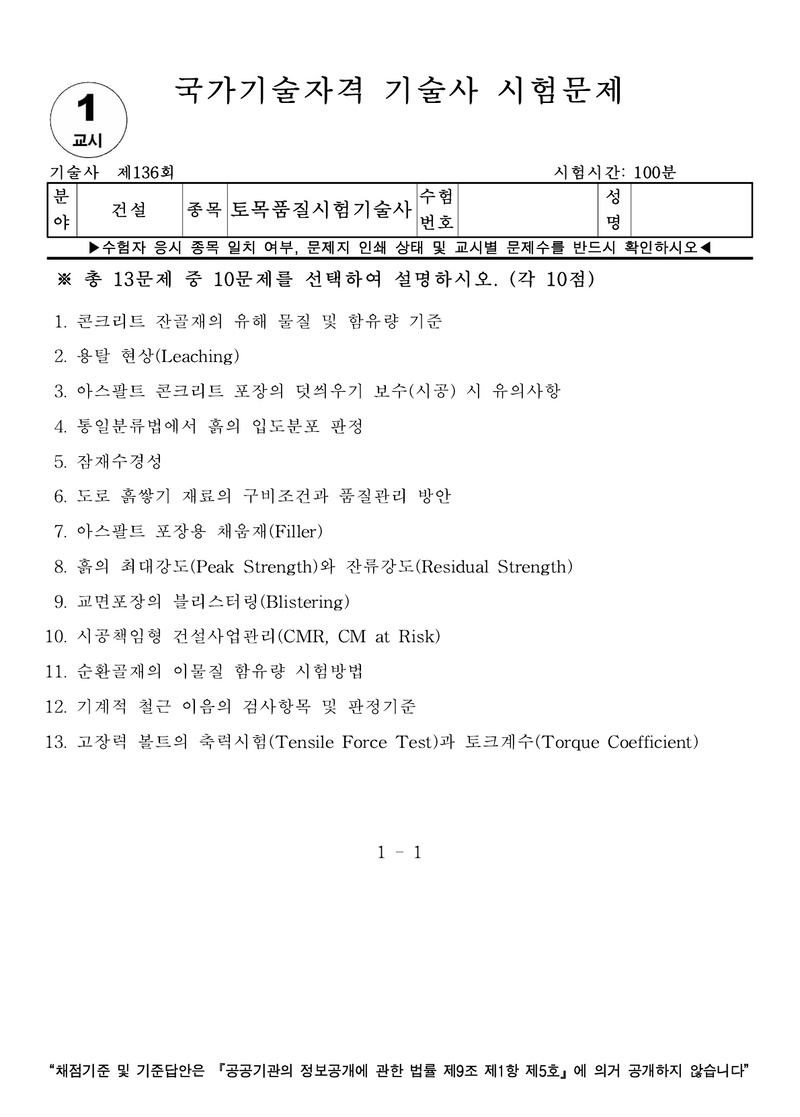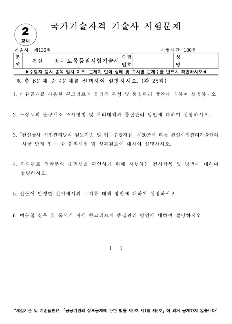 [136ȸ] Åä¸ñǰÁú½ÃÇè±â¼ú»ç ±âÃâ¹®Á¦ |