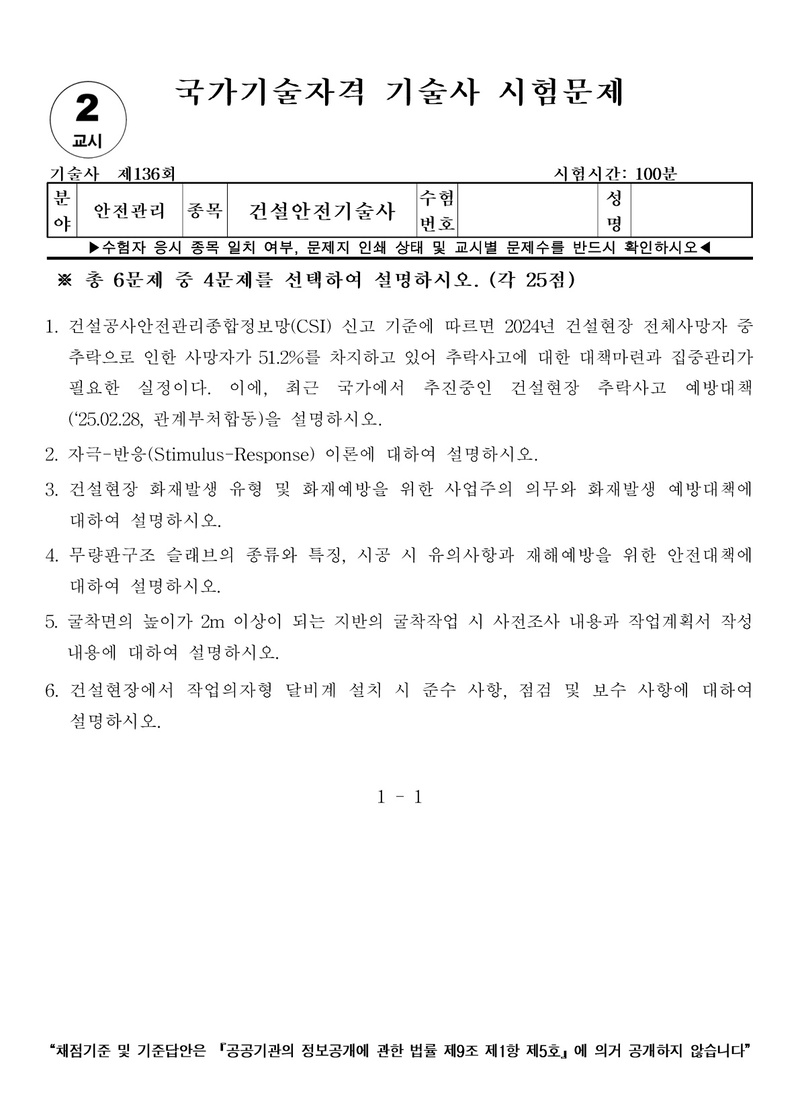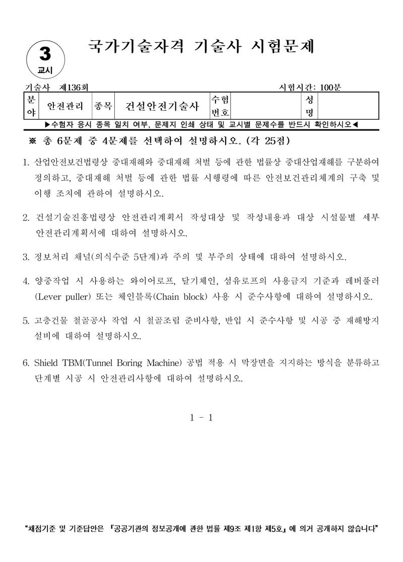 [136ȸ] °Ç¼³¾ÈÀü±â¼ú»ç ±âÃâ¹®Á¦ |
