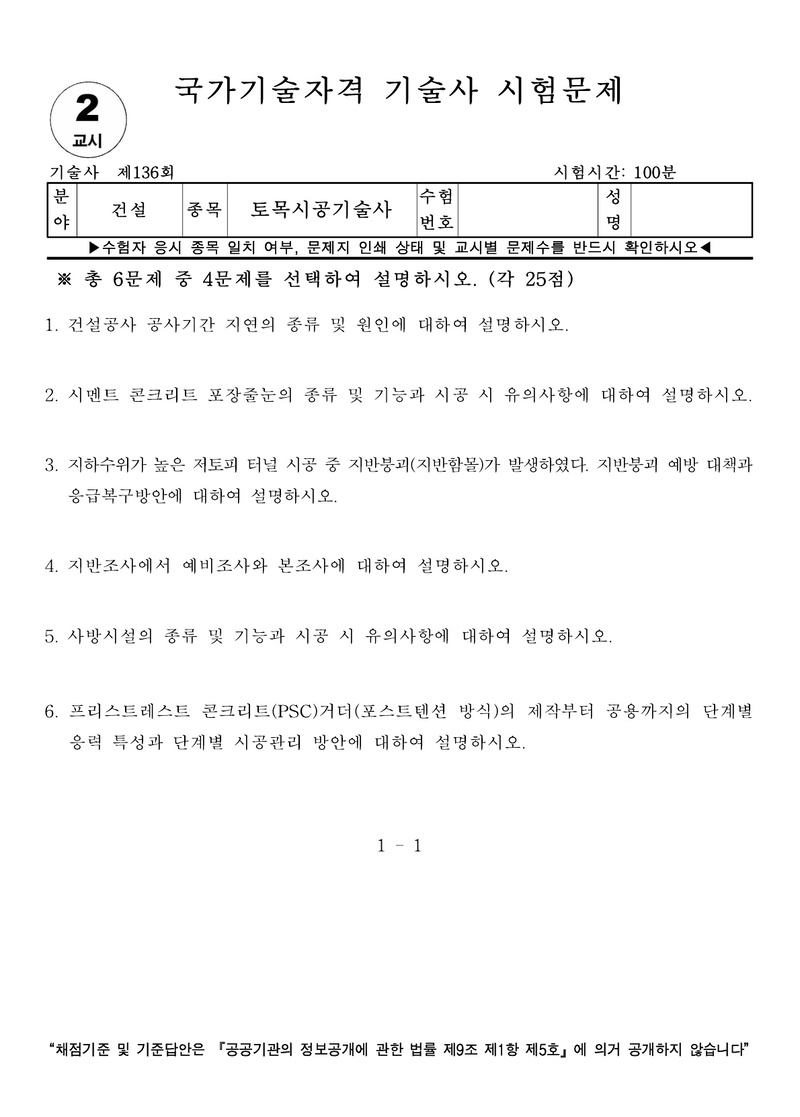 [136ȸ] Åä¸ñ½Ã°ø±â¼ú»ç ±âÃâ¹®Á¦ |