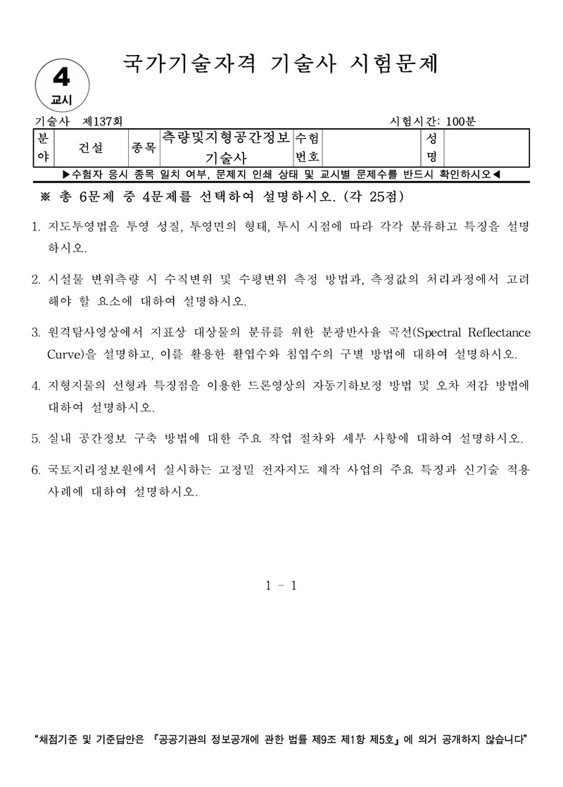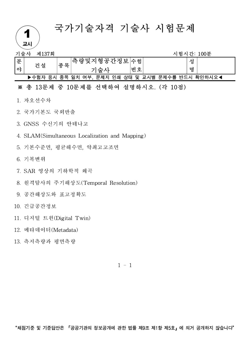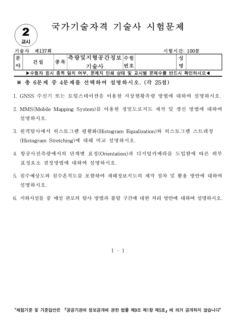 [137ȸ] Ãø·®¹×ÁöÇü°ø°£Á¤º¸±â¼ú»ç ±âÃâ¹®Á¦ |