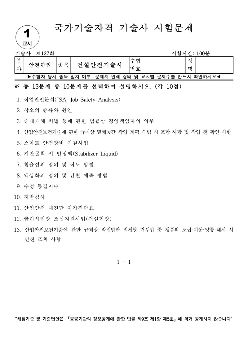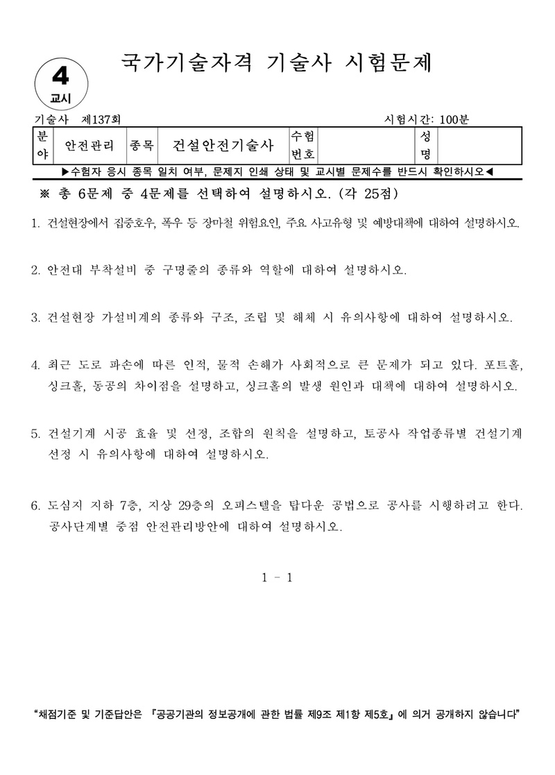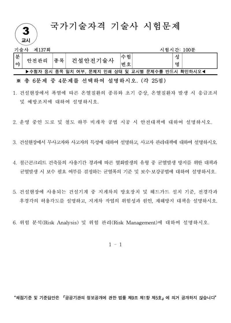 [137ȸ] °Ç¼³¾ÈÀü±â¼ú»ç ±âÃâ¹®Á¦ |