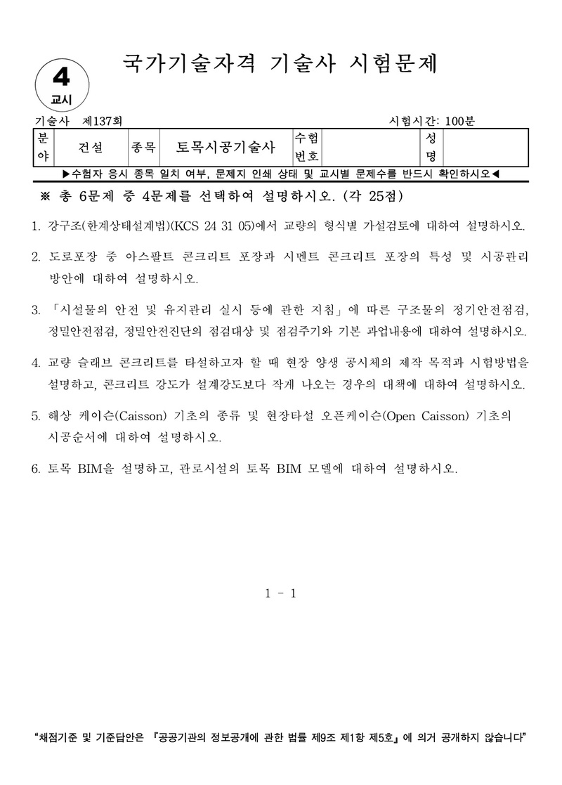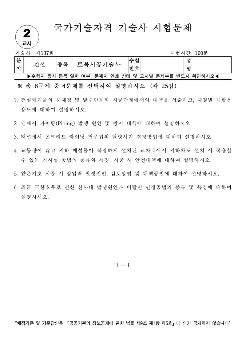 [137ȸ] Åä¸ñ½Ã°ø±â¼ú»ç ±âÃâ¹®Á¦ |