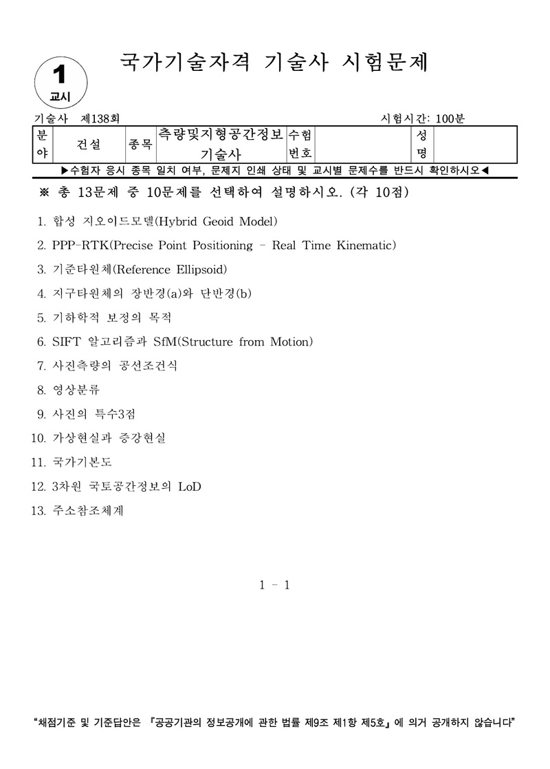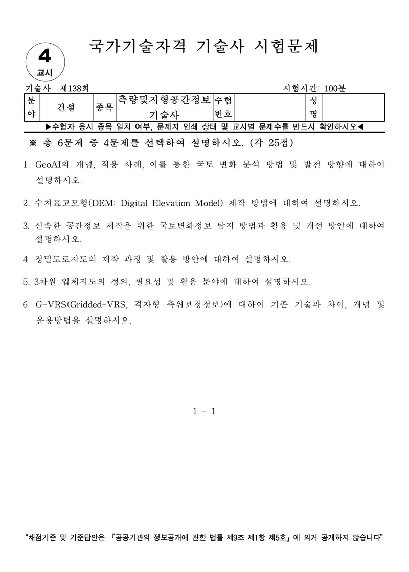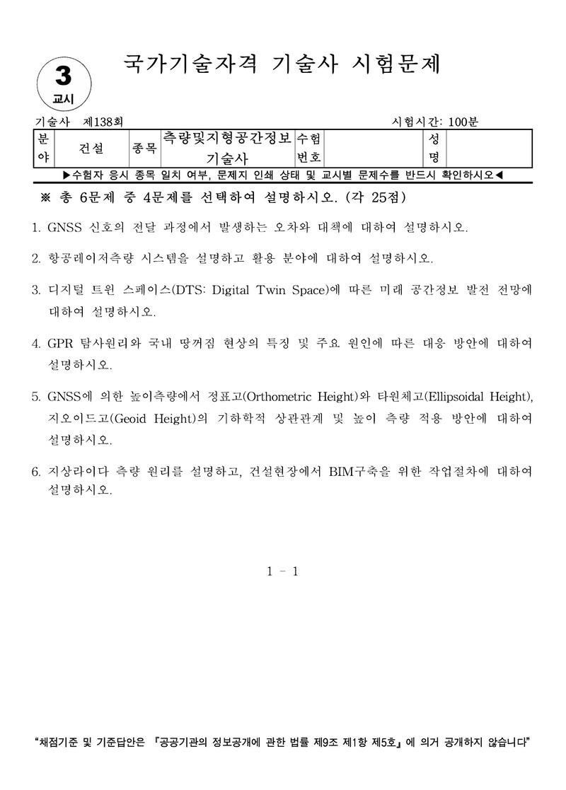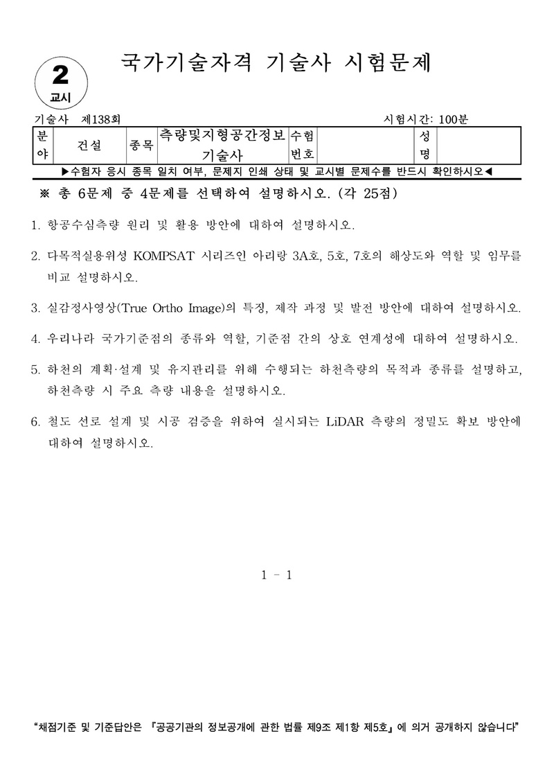 [138ȸ] Ãø·®¹×ÁöÇü°ø°£Á¤º¸±â¼ú»ç ±âÃâ¹®Á¦ |