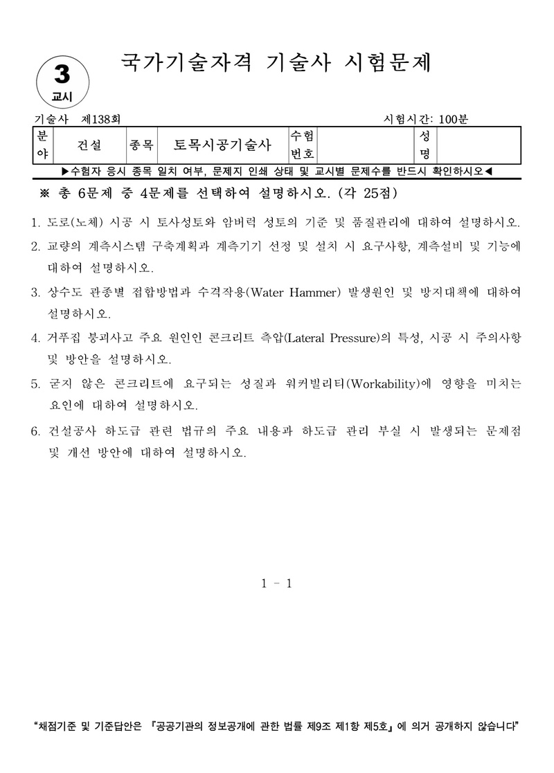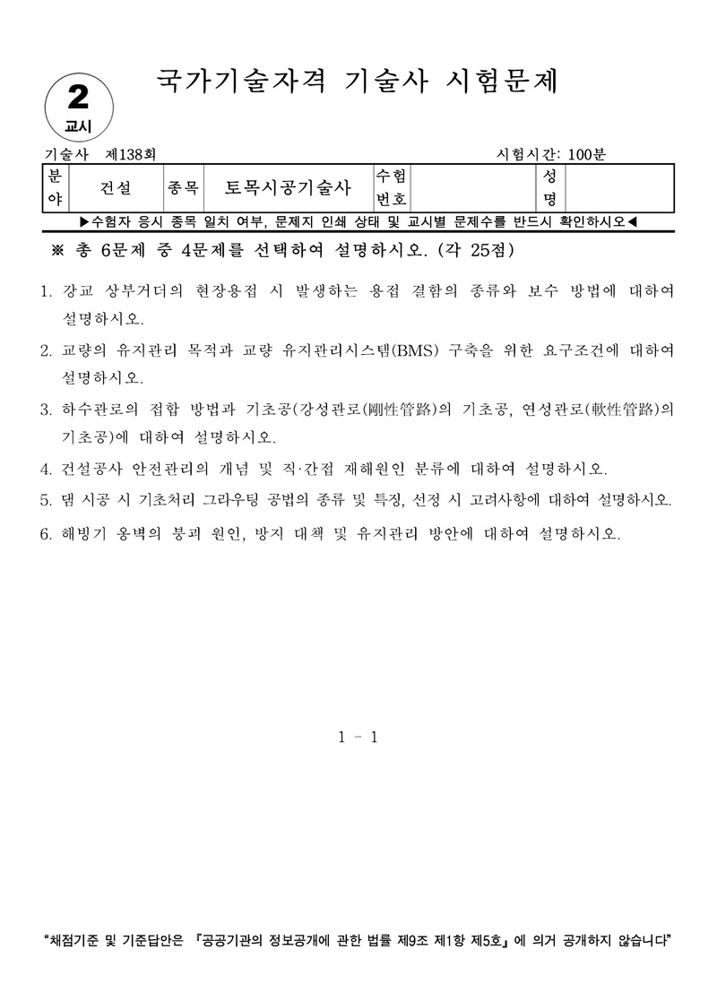 [138ȸ] Åä¸ñ½Ã°ø±â¼ú»ç ±âÃâ¹®Á¦ |
