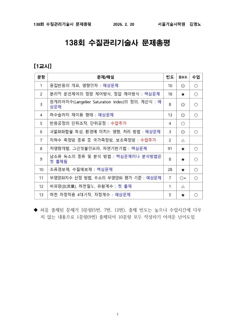 [¼öÁú°ü¸®] ½ÃÇèÃÑÆò(138ȸ) |