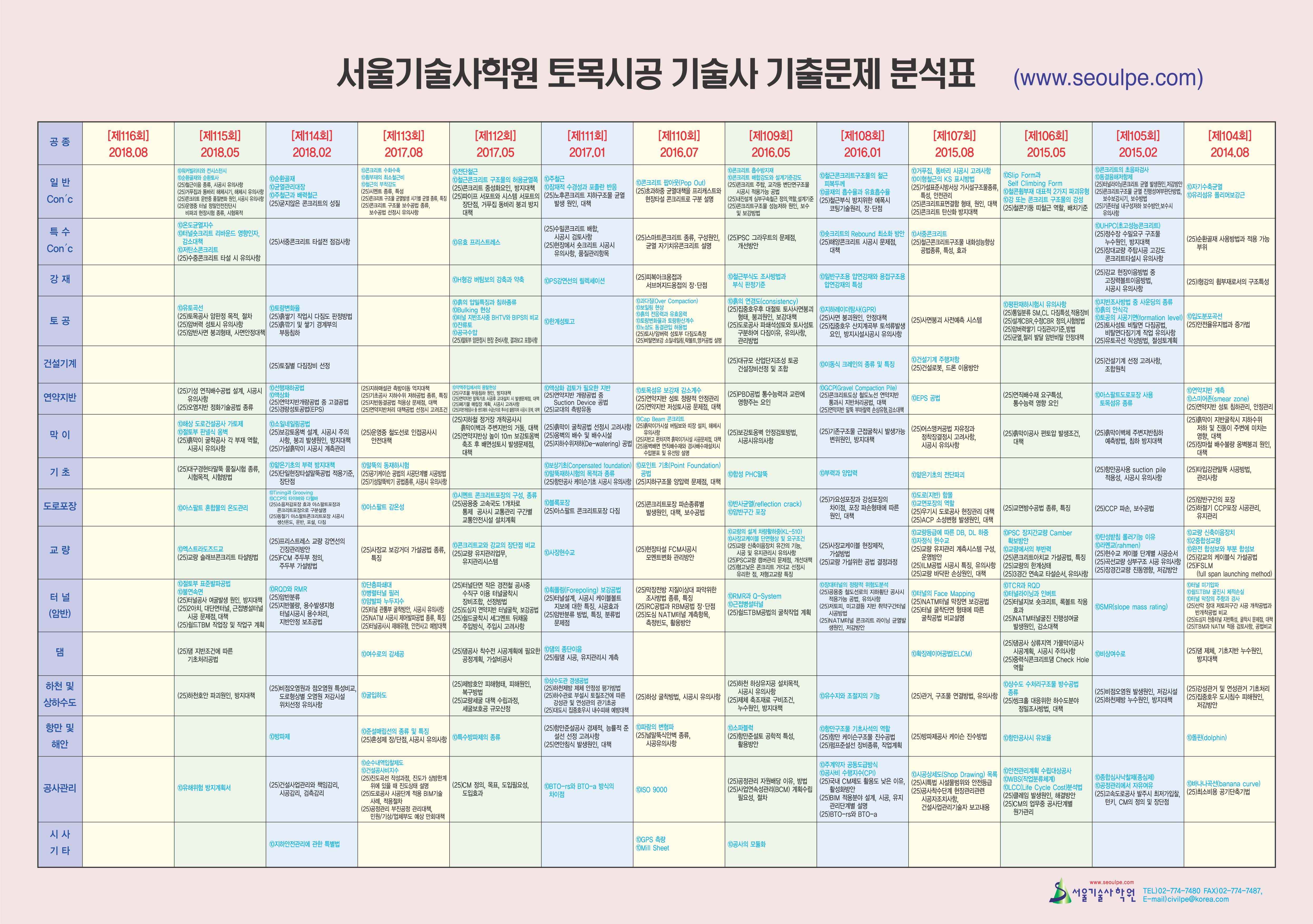 ¾È³çÇϼ¼¿ä? ¼¿ï±â¼ú»çÇпøÀÔ´Ï´Ù. 1. Åä¸ñ½Ã°ø ±â¼ú»ç ½ÃÇè¹®Á¦¸¦ Àϸñ¿ä¿¬ÇÏ°Ô º¼ ¼ö ÀÖ´Â ±âÃâ¹®Á¦ ºÐ¼®Ç¥¸¦ Á¦ÀÛÇÏ¿´½À´Ï´Ù. 2. À̹ø¿¡ Á¦ÀÛÇÑ ±âÃâ¹®Á¦ ºÐ¼®Ç¥´Â 2014³â µÎ ¹øÂ° ½ÃÇèÀÎ Á¦104ȸ Åä¸ñ½Ã°ø±â¼ú»ç ½ÃÇèºÎÅÍ 115ȸ ½ÃÇè±îÁö °øÁ¾º°·Î ºÐ¼®ÇßÀ¸¸ç Ã¥ÀåÀ̳ª ÈÀå½Ç µî Àü¸é¿¡ ºÙÀÏ ¼ö ÀÖ°Ô A3 Å©±â·Î Á¦À۵Ǿú½À´Ï´Ù. 3. Çпø ±³À籸¸Å ½Ã °°ÀÌ Á¦°øµÇ¸ç Çпø ¼ö°»ýÀº À̹ø ÁÖ ºÎÅÍ Çпø¿¡¼ Á¦°øÇÒ ¿¹Á¤ÀÔ´Ï´Ù. 4. Â÷º°ÈµÈ Á¤º¸·Î Ç×»ó ¼ö°»ýºÐµé²² ´Ù°¡¼°Ú½À´Ï´Ù.