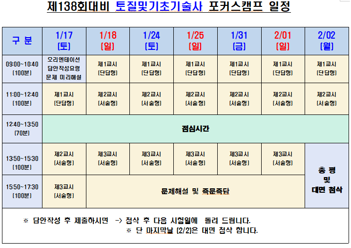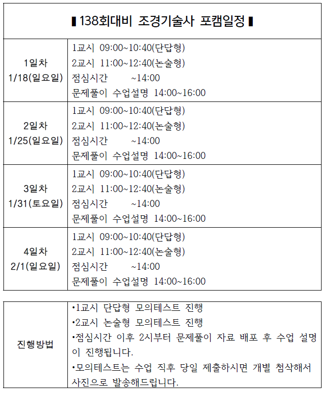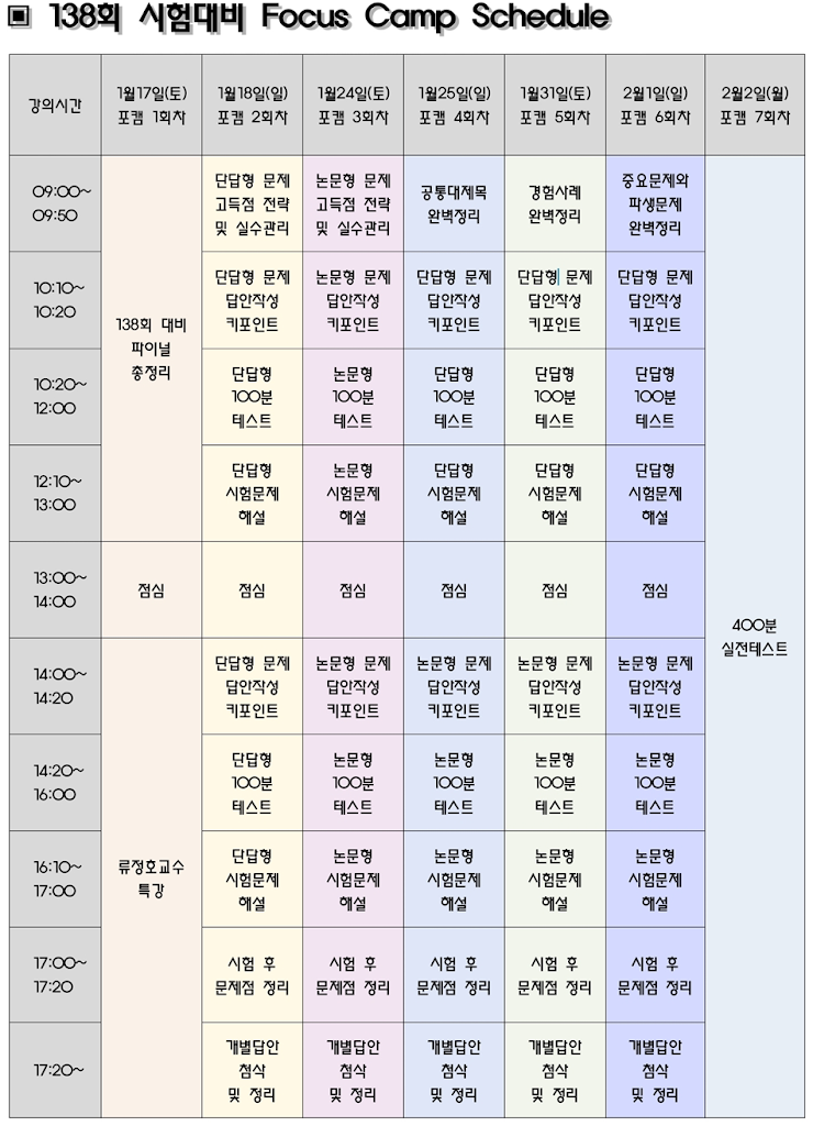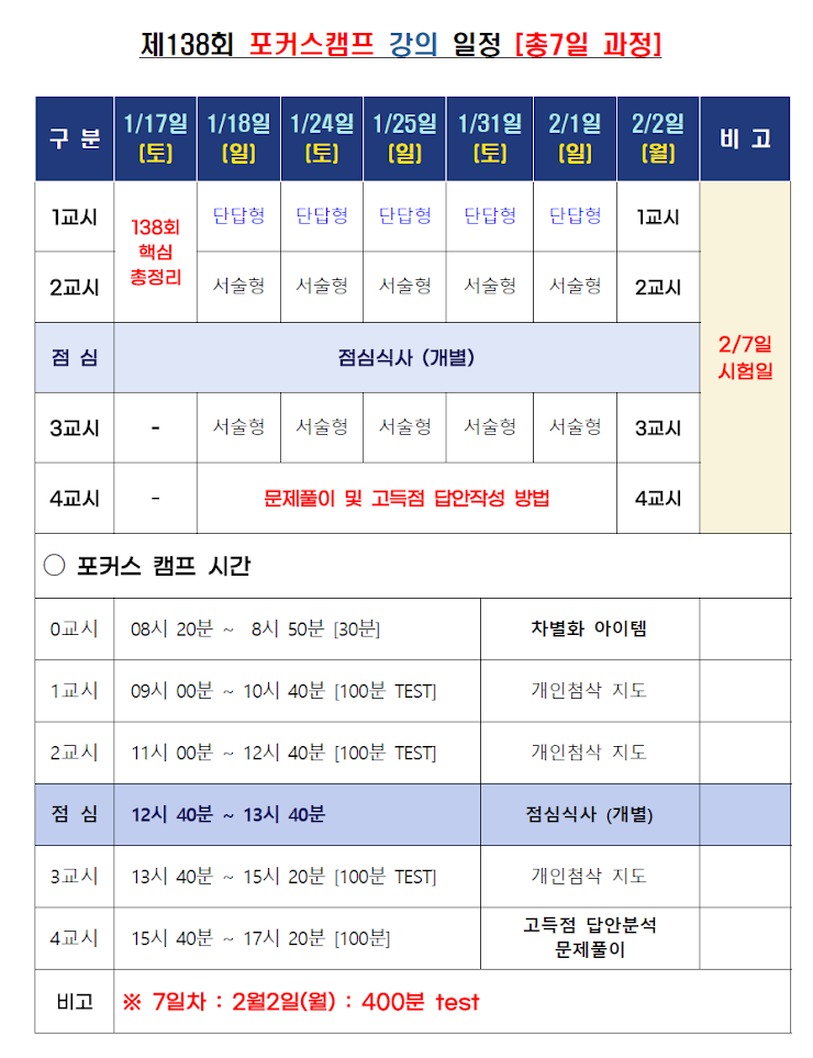 [°øÅë] 138ȸ ½ÃÇè´ëºñ Æ÷Ä¿½º Ä·ÇÁ ½Ã°£Ç¥ |