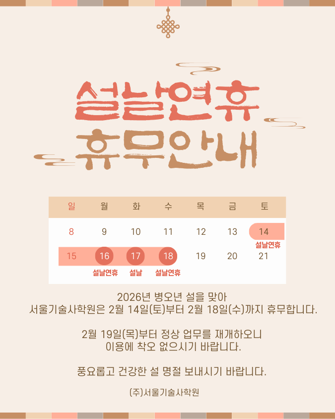 [°øÅë] ¼¿ï±â¼ú»çÇпø '¼³ ¿¬ÈÞ ÈÞ¹«' ¾È³»(2/14~2/18) |