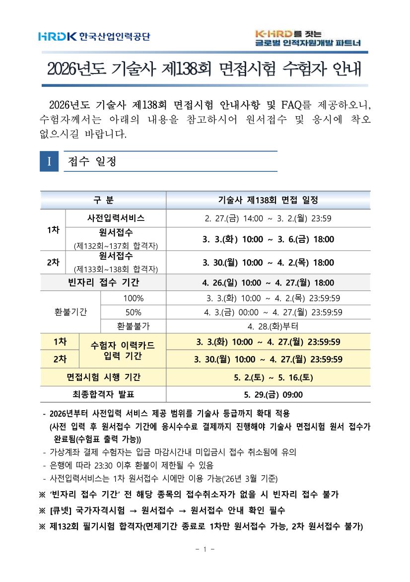 [°øÁö] Á¦138ȸ ¸éÁ¢½ÃÇè ¼öÇèÀÚ ¾È³»»çÇ× ¹× FAQ |